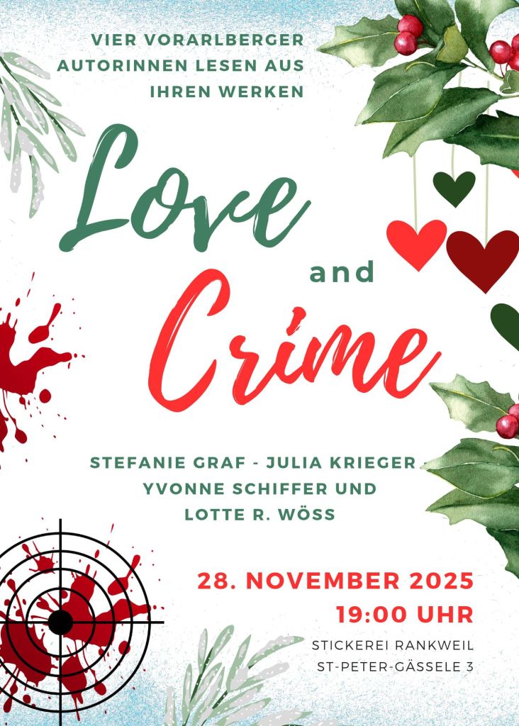 04.10.2025: „Love and Crime“ – eine perfekte Kombination! Am 28. November 2025 treffen sich vier Vorarlberger Autorinnen in der Stickerei in Rankweil, um aus ihren Werken zu lesen.